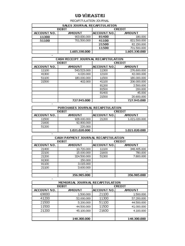 Recapitulation Pdf Debits And Credits Corporate Jargon